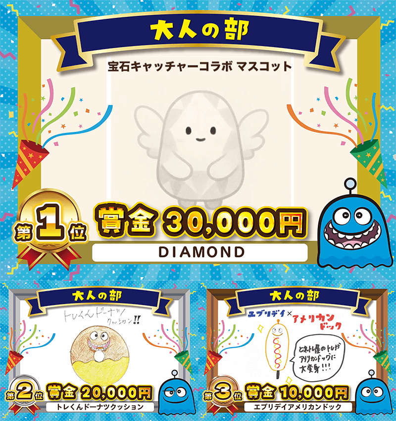 受賞アイディアについては、受賞者の方と一緒に商品開発を進め、実際にクレーンゲームの景品として商品化していく予定です。