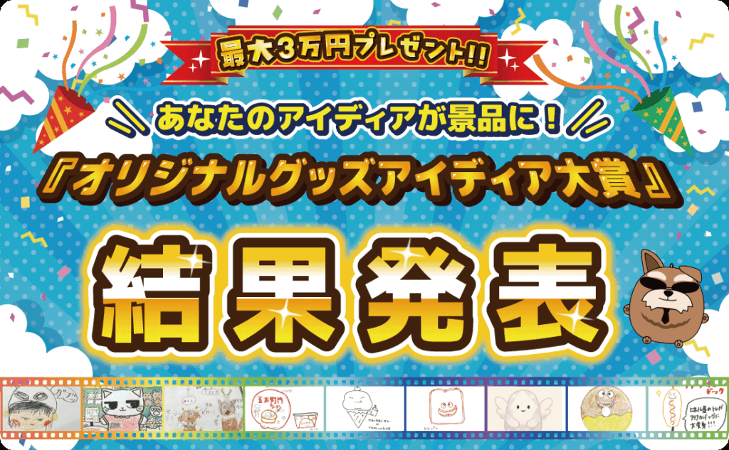 2025年7月19日(土)〜8月31日(日)まで開催した「オリジナルグッズアイディア大賞」において、各部門の受賞者が決定いたしました!ご応募いただいた皆様、素晴らしいアイデアを誠にありがとうございました!子供の部 受賞作品学生の部 受賞作品...
